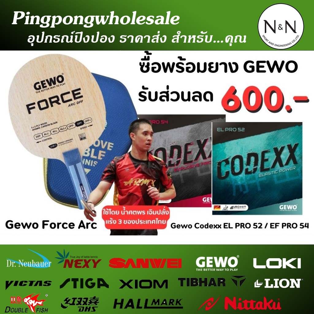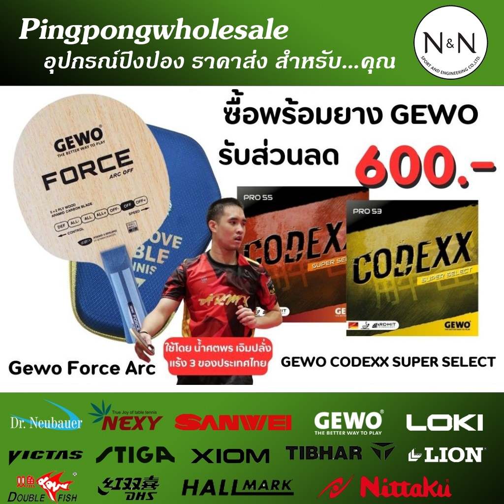 โอกาสพิเศษสำหรับผู้ที่ต้องการอัพเกรดอุปกรณ์ปิงปอง! เลือกซื้อไม้ปิงปอง GEWO Force ARC จับคู่กับยางปิงปอง Gewo สุด Hi-End รุ่นใดก็ได้ รับส่วนลดทันที 700 บาท เพื่อสัมผัสพลังและความแม่นยำที่เหนือกว่าในทุกการเล่นของคุณ