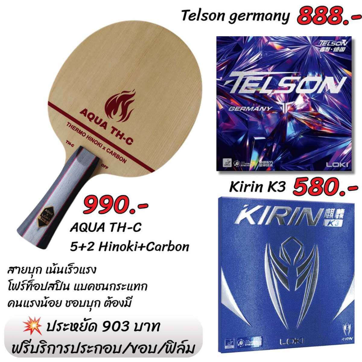 🏓 ชุดไม้ปิงปอง AQUA TH-C พร้อมยาง Loki Telson Germany + Loki Kirin K3