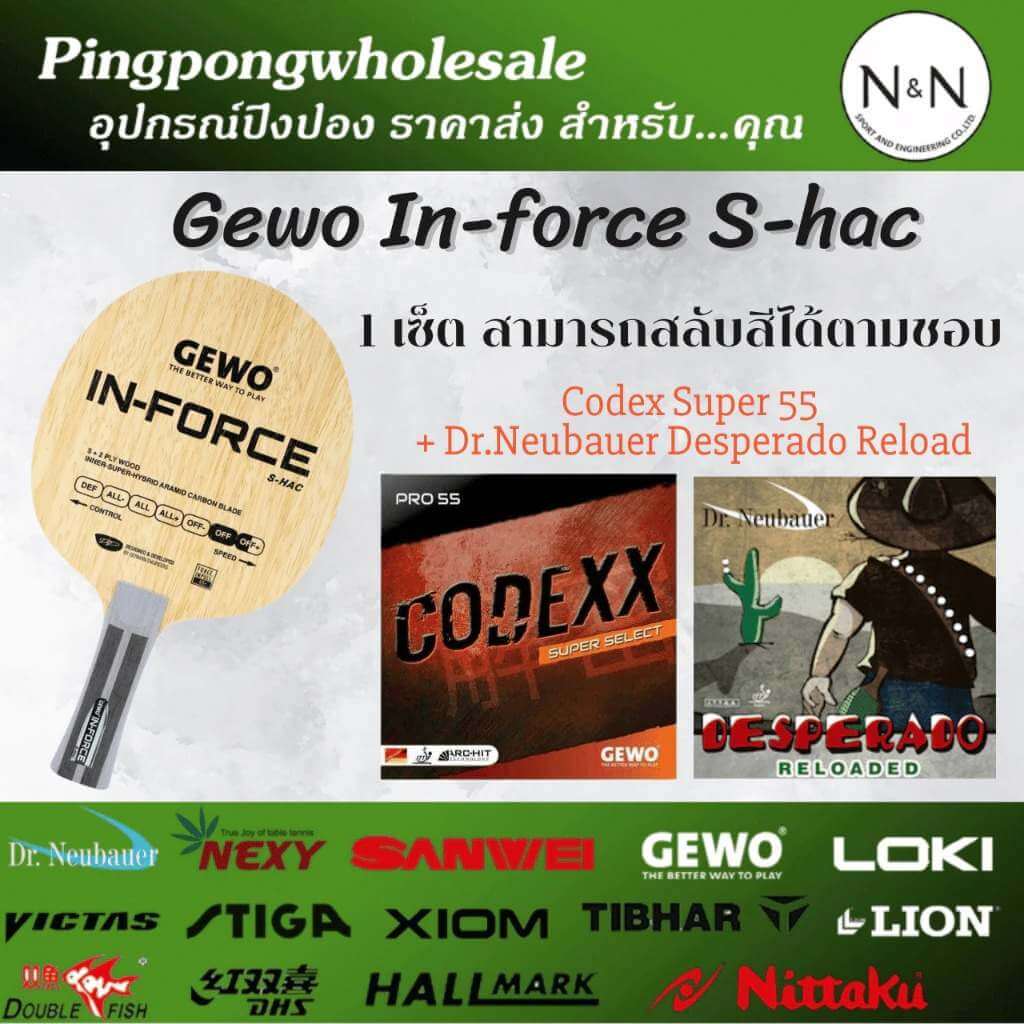 การผสมผสานของ ไม้ประกอบ Gewo In-Force S-HAC กับยาง Codexx Super 55 และ Dr. Neubauer Desperado Reloaded ทำให้ชุดนี้เป็นตัวเลือกที่สมบูรณ์แบบสำหรับผู้เล่นระดับกลางถึงสูงที่ต้องการความสมดุลระหว่างพลัง สปีด ความแม่นยำ และความสามารถในการปรับเปลี่ยนเกมได้อย่างยืดหยุ่น