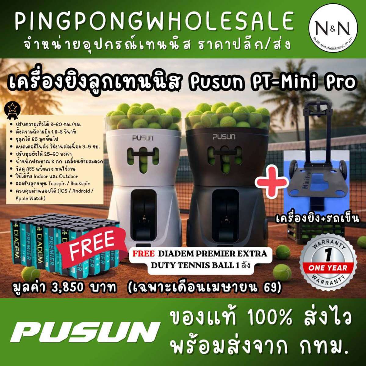 Pusun PT-Mini Pro เครื่องยิงลูกเทนนิสอัจฉริยะ พกง่าย ซ้อมได้จริงจัง