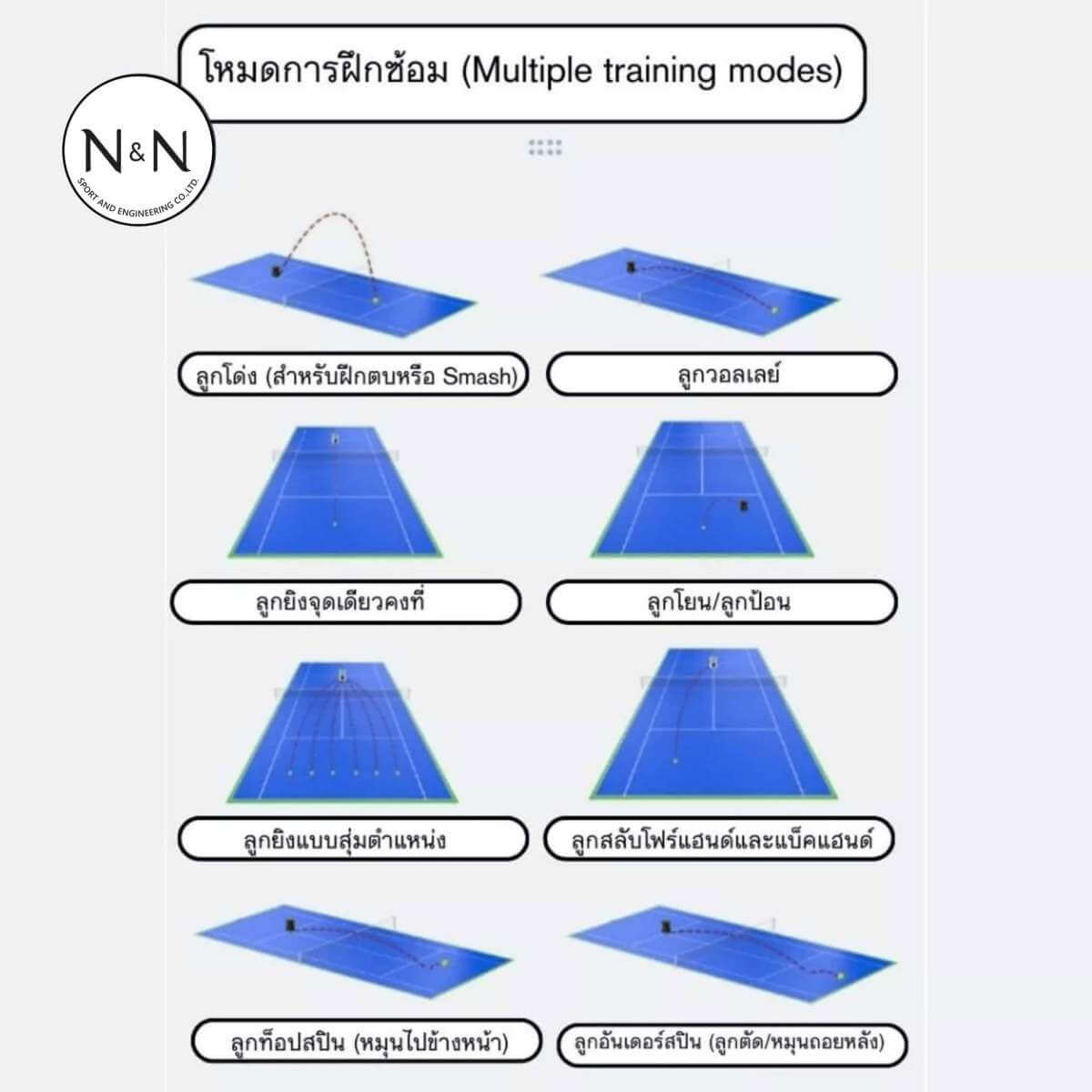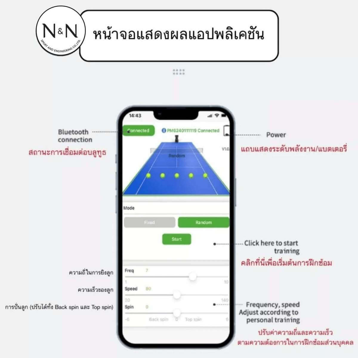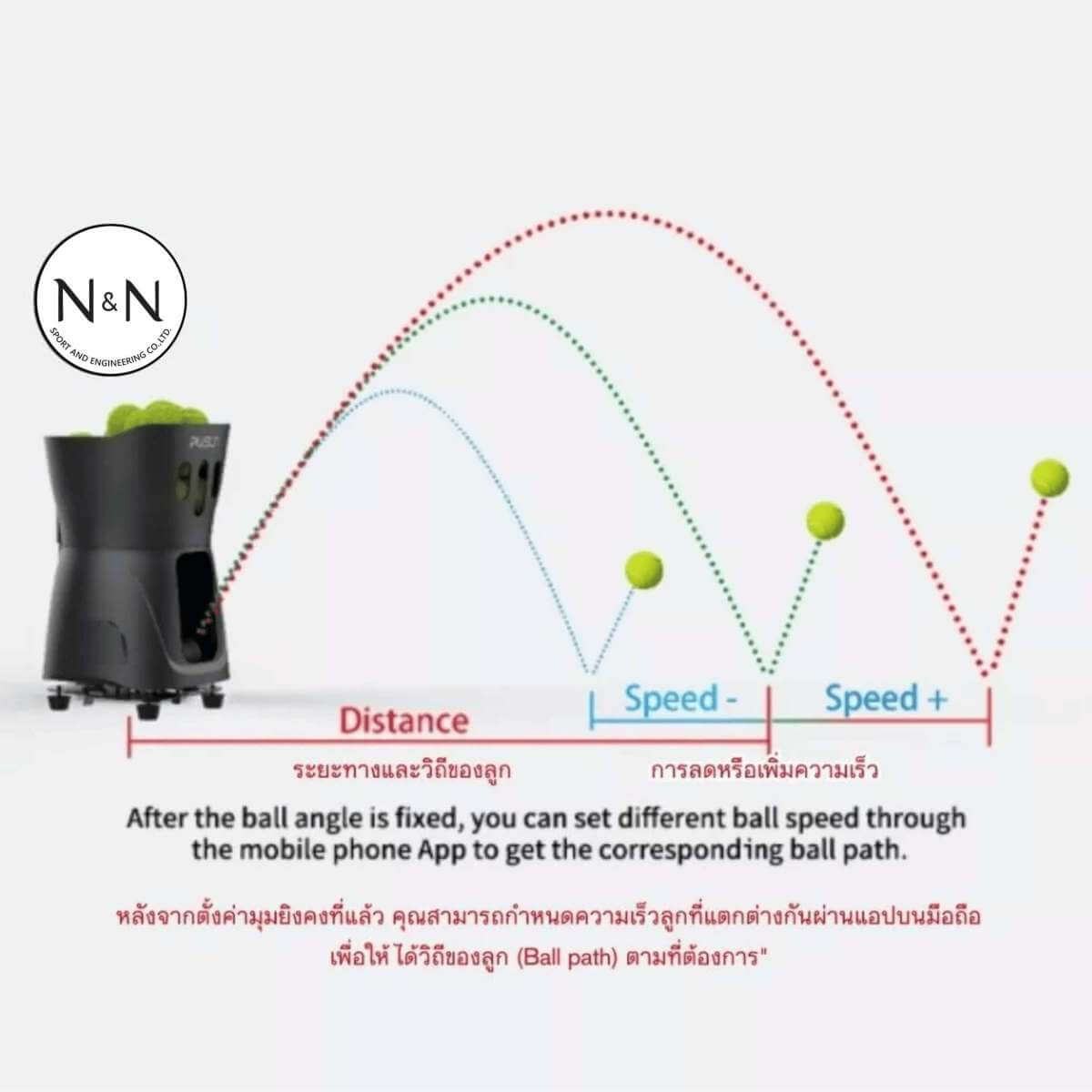 เลือกความเร็วได้ตั้งแต่ 8–60 กม./ชม. และตั้งช่วงเวลาการยิง 1.8–8 วินาที ช่วยจำลองจังหวะการเล่นได้หลากหลาย ทั้งการรับลูกช้าไปจนถึงเกมเร็วต่อเนื่อง